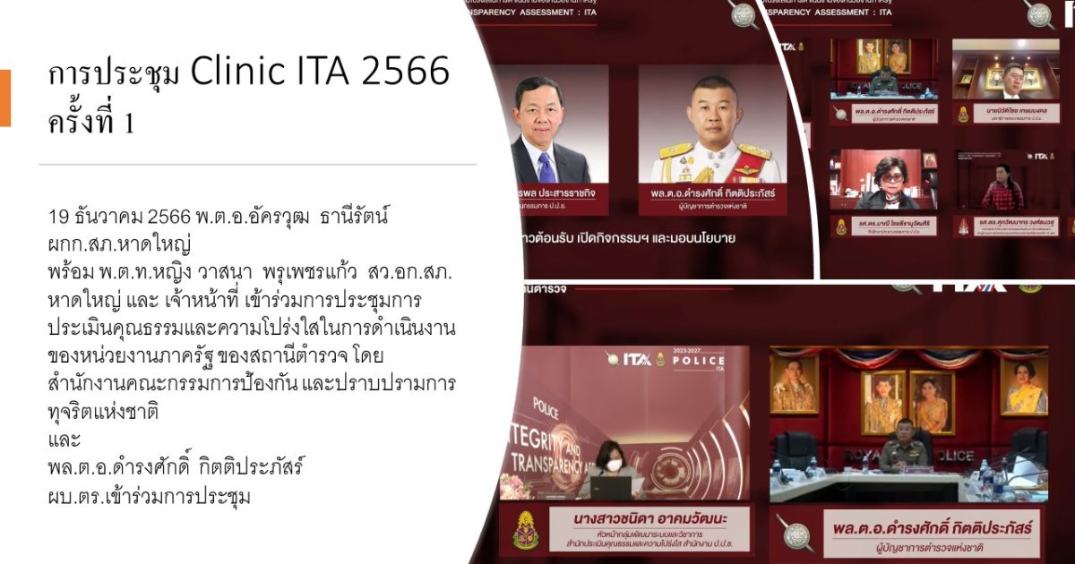 พร้อม พ.ต.ท.หญิง วาสนา พรุเพชรแก้ว สว.อก.สภ.หาดใหญ่ และ เจ้าหน้าที่ เข้าร่วมการประชุมการประเมินคุณธรรมและความโปร่งใสในการดำเนินงานของหน่วยงานภาครัฐ ของสถานีตำรวจ โดย สำนักงานคณะกรรมการป้องกัน และปราบปรามการทุจริตแห่งชาติ