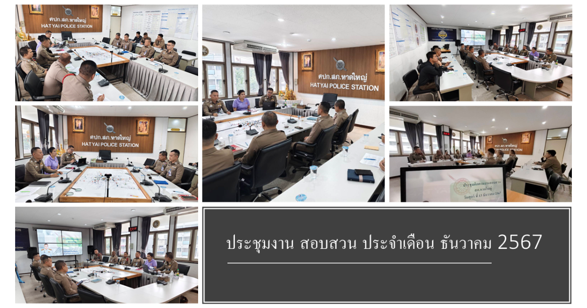 ประชุมติดตามงานสอบสวน ประจำเดือนธันวาคม 2567 13 ธันวาคม 2567 โดย admin2 / ข่าวประชาสัมพันธ์,ข่าวกิจกรรม,ข่าวประชาสัมพันธ์,ข่าวประชาสัมพันธ์,ข่าวฝากประชาสัมพันธ์,ข่าวประชาสัมพันธ์,ข่าวกิจกรรม,งานสอบสวน ประชุมติดตามงานสอบสวน ประจำเดือนธันวาคม 2567 วันศุกร์ที่ 13 ธันวาคม พ.ศ. 2567 เวลา 09.00 น. พ.ต.ท.โชคทวี จันทร์ทองอ่อนรอง ผกก.(สอบสวน)สภ.หาดใหญ่พร้อมพ.ต.ท.หญิง ภัทรียา ปานนิ่ม รอง ผกก.(สอบสวน),พ.ต.ท.วราพงศ์ หะยีหวัง รอง ผกก.(สอบสวน),สารวัตรสอบสวน, และพนักงานสอบสวน สภ.หาดใหญ่เข้าร่วม ประชุมติดตามงานสอบสวน ประจำเดือนธันวาคม ณ ห้องประชุม ศปก. สภ.หาดใหญ่ FacebookFacebookXXLINELine