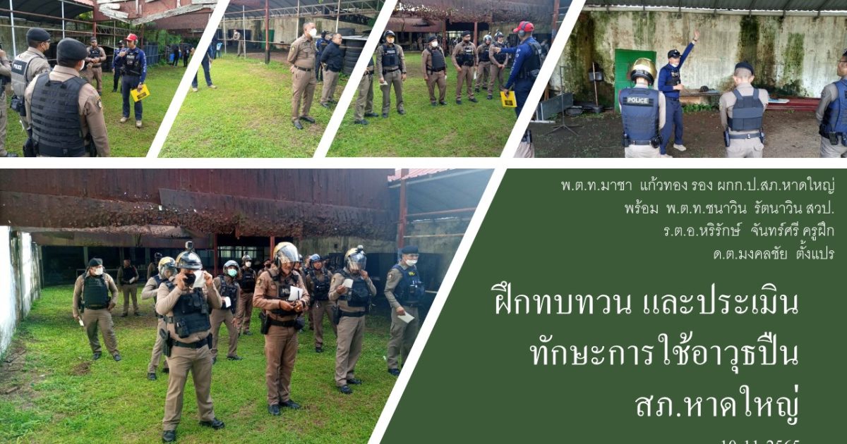 ฝึกทบทวน และประเมินทักษะการใช้อาวุธ 11 พฤศจิกายน 2565 โดย admin / ข่าวประชาสัมพันธ์,ข่าวกิจกรรม,งานอำนวยการ พ.ต.ท.มาชา แก้วทอง รอง ผกก.ป.สภ.หาดใหญ่ พร้อม พ.ต.ท.ชนาวิน รัตนาวิน สวป.สภ.หาดใหญ่, ร.ต.อ.หริรักษ์ จันทร์ศรี รอง สวป.สภ.หาดใหญ่, และคณะทำหน้าที่ครูฝึก ทำการทดสอบยิงปืนพกสั้นประจำกายโดยเน้นหลักความปลอดภัย และความแม่นยำรวมถึงฝึกเทคนิคการใช้ให้มีความชำนาญในท่าทางการบริหารกลไกอาวุธปืนในลักษณะต่างๆ โดยใช้กระสุนปืนที่ผู้บังคับบัญชาสนับสนุนจัดหาให้ จำนวน 15 นัดต่อนาย ให้แก่ กำลังพลงานสายตรวจป้องกันปราบปราม สภ.หาดใหญ่ ชุดที่ 4 และสายตรวจเดินเท้าร้านทองจำนวนผู้เข้ารับการฝึกทั้งสิ้น 31 นาย FacebookFacebookXXLINELine