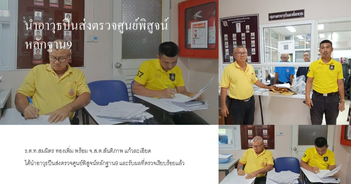เจ้าหน้าที่ห้องคดี นำส่งของกลางตรวจสอบ 23 พฤษภาคม 2568 โดย admin / ข่าวประชาสัมพันธ์,ข่าวกิจกรรม,งานสอบสวน นำส่งของกลางตรวจสอบ ศพฐ9 วันที 22 พฤษภาคม 2568เวลา 11.00น.ร.ต.ท.สมมิตร ทองเพิ่ม,จ.ส.ต.สันติภาพ แก้วละเอียดได้นำอาวุธปืน ส่งตรวจศูนย์พิสูจน์หลักฐาน9 และรับผลที่ตรวจเรียบร้อยแล้ว FacebookFacebookXXLINELine