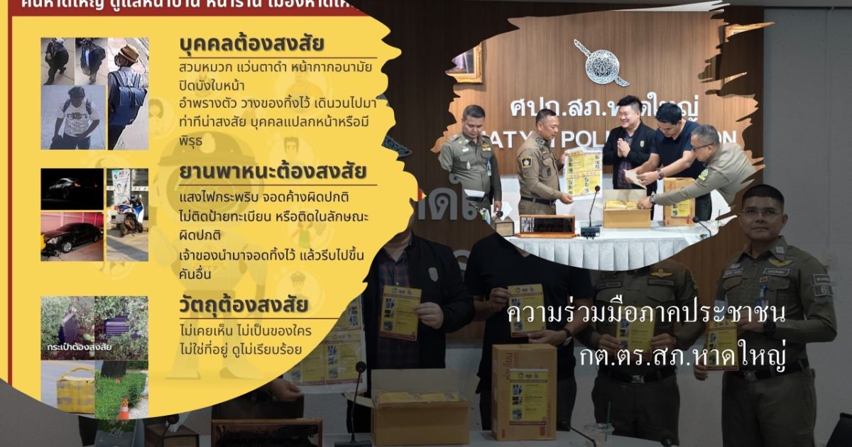 ความร่วมมือ ภาคประชาชน กต.ตร.68 1 เมษายน 2568 โดย admin / ข่าวประชาสัมพันธ์,ข่าวภารกิจผู้บังคับบัญชา,การมีส่วนร่วมของหัวหน้าสถานี,ข่าวประชาสัมพันธ์,ข่าวภารกิจผู้บังคับบัญชา,ข่าวประชาสัมพันธ์,ข่าวภารกิจผู้บังคับบัญชา,ผลการดำเนินงาน กต.ตร. กต.ตร.สภ.หาดใหญ่ มอบแผ่นพับใบปลิว 1 เม.ย.68ดร.ไพโรจน์ ชัยจิระกุลคณะกรรม กต.ตร.มอบ แผ่นพับใบปลิวในการระวังป้องกันเหตุ ภาคประชาชนในการสอดส่องดูแล แจ้งข้อมูลข่าวสาร ให้กับ สถานีตำรวจภูธรหาดใหญ่ ใช้ในการปฏิบัติหน้าที่เพื่อระวังและป้องกันเหตุเกี่ยวกับทรัพย์ และความมั่นคงในพื้นที่#ร่วมกันดูแลเมืองหาดใหญ่#กำลังภาคประชาชน#เครือข่ายภาคประชาชน FacebookFacebookXXLINELine