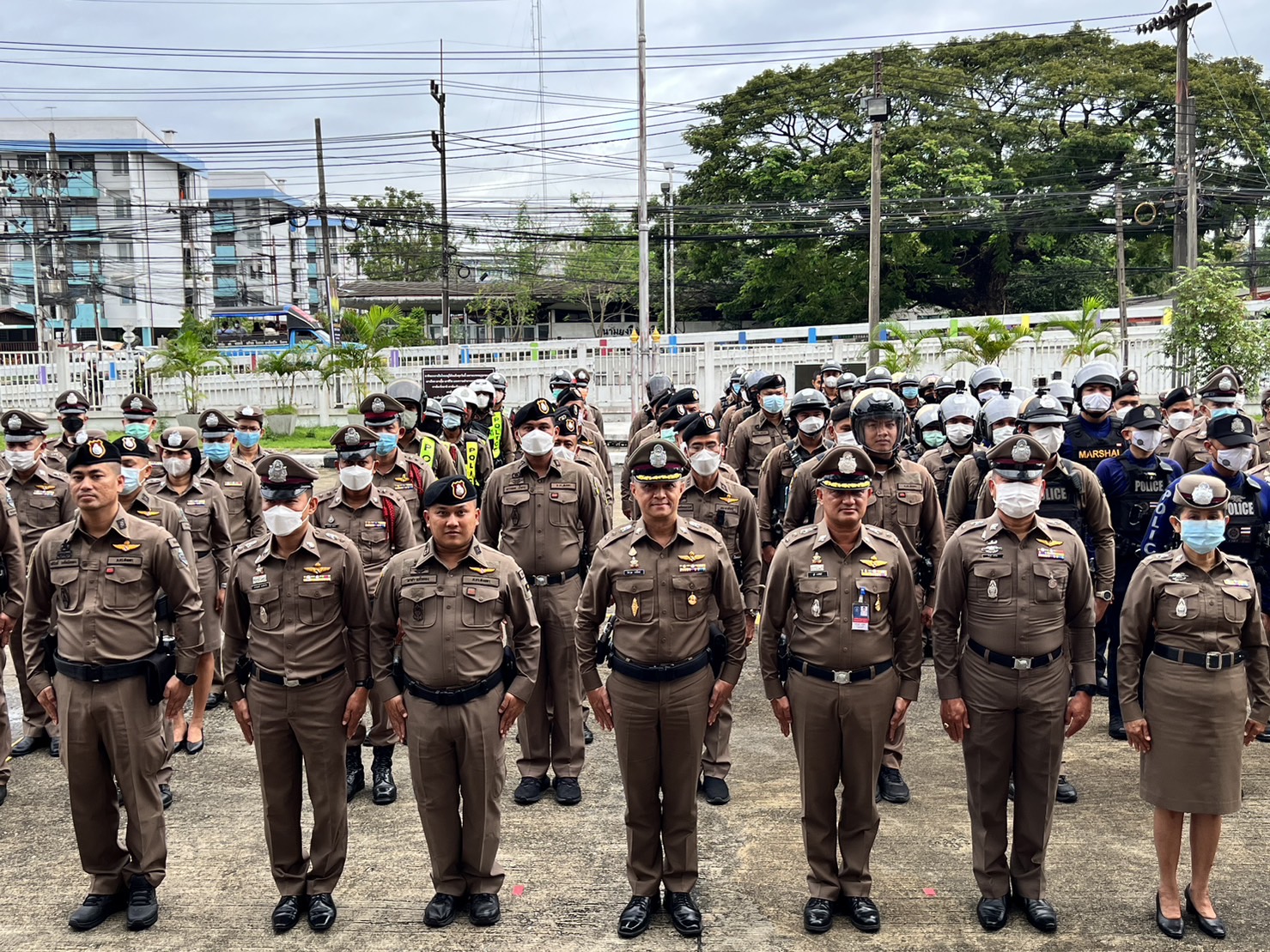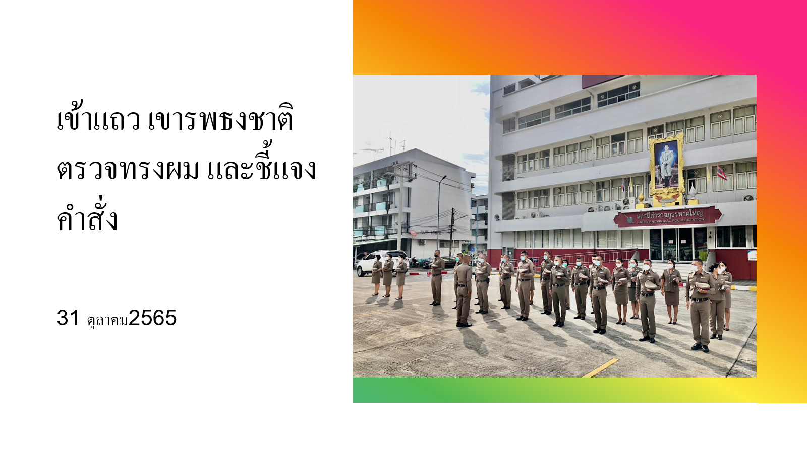 พ.ต.ท.หญิง วาสนา พรุเพชรแก้วสว.อก.สภ.หาดใหญ่นำข้าราชการตำรวจ สภ.หาดใหญ่ ร่วมเข้าแถวเคารพธงชาติ บริเว