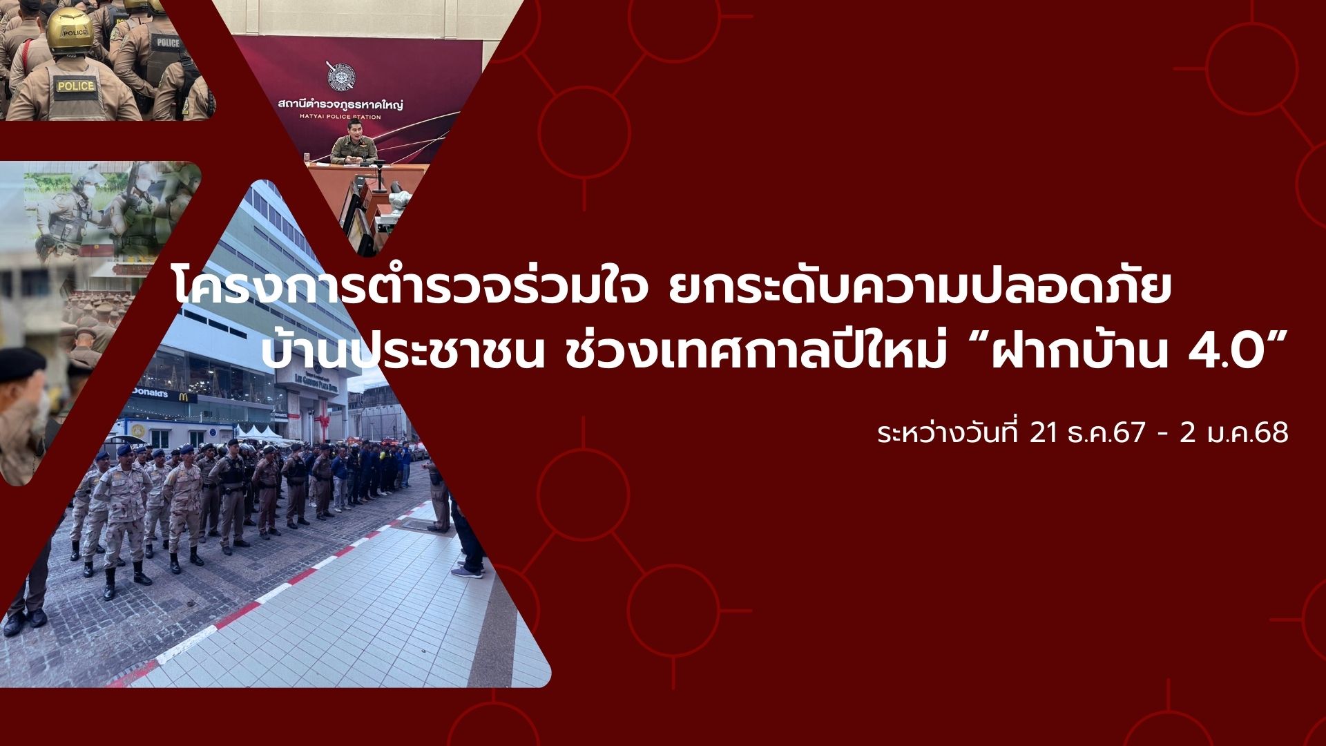 โครงการตำรวจร่วมใจ ยกระดับความปลอดภัยบ้านประชาชน ช่วงเทศกาลปีใหม่ “ฝากบ้าน 4.0” ระหว่างวันที่ 21 ธ.ค