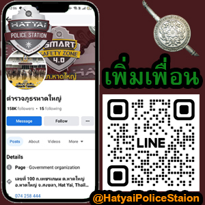LINE OA สภ.หาดใหญ่ ใช้สื่อสารประสัมพันธ์ เท่านั้น ไม่โอนเงินไปตรวจสอบ โหลดแอพใดๆ ติดตั้ง แจ้งหมายจับ